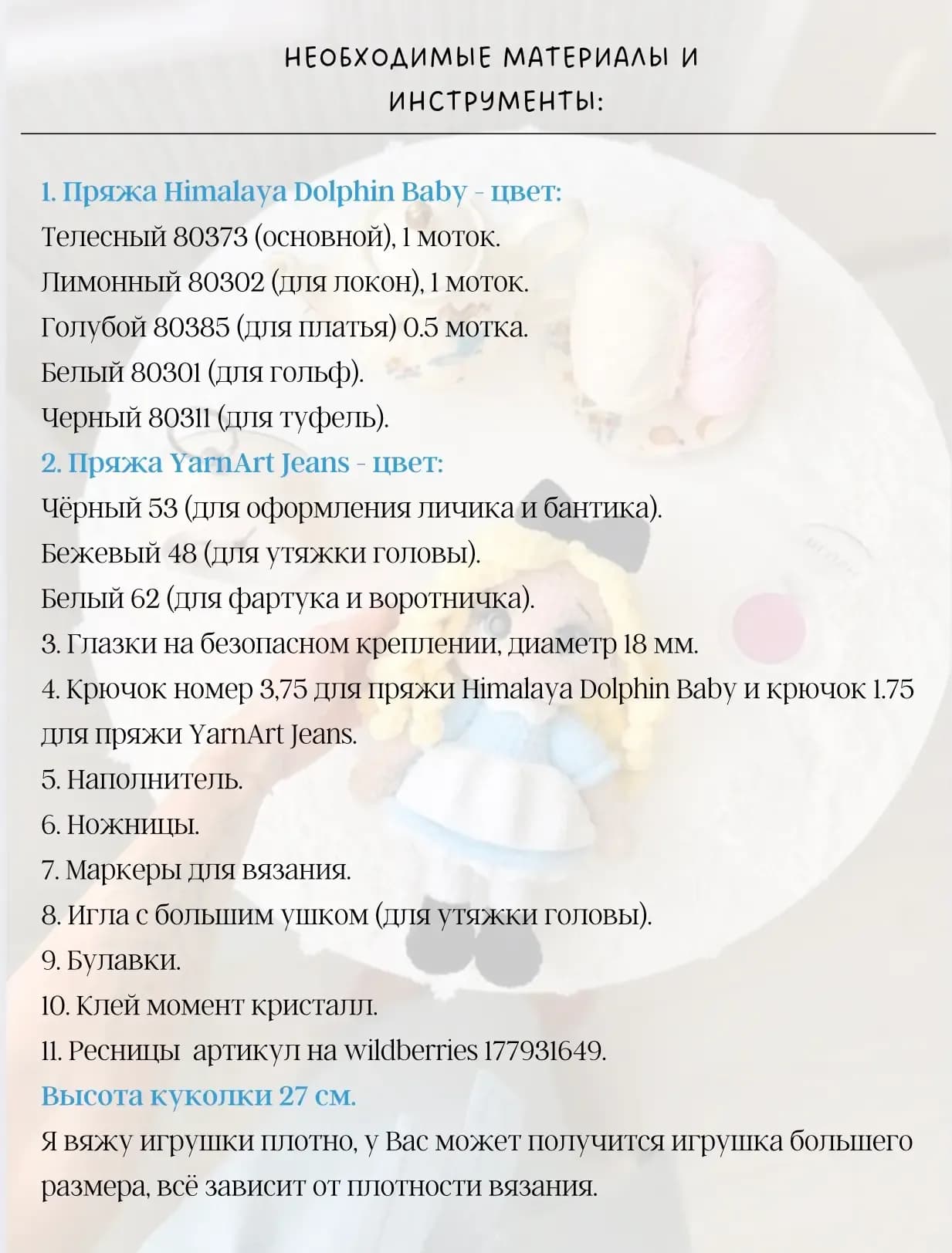 Мастер-класс «Алиса»🎀 Куколка цельновязаная пришиваем только ручки и волосики. Высота 27 см.